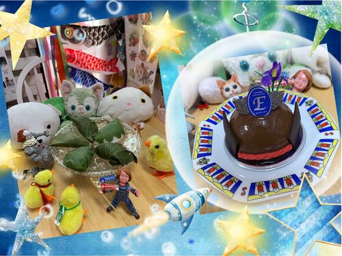今日はこどもの日♪柏餅の種類がこし。よもぎ。桜。味噌。いも。ごまと6種類もあって選べなーーーーい!!そんな時は〜♪みけにゃん:「ぜんぶー!!!!!!」笑チャッキー :「うわぁ!鯉のぼりだぁ♪」フクロウ博士:「鯉のぼりは江戸時代から始まっていて中国…