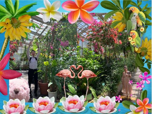 シンガポール ガーデンズバイザベイ フラワードーム♪ 百合花だけにユリの花見つけるとテンション上がります!笑 肝心なユリの花、窓の外向いちゃってますが(^^;; フレームみたいになってるエクステリアと植物達♪ 溢れる植物達に興奮中のうさぎのおじさん、ウ…