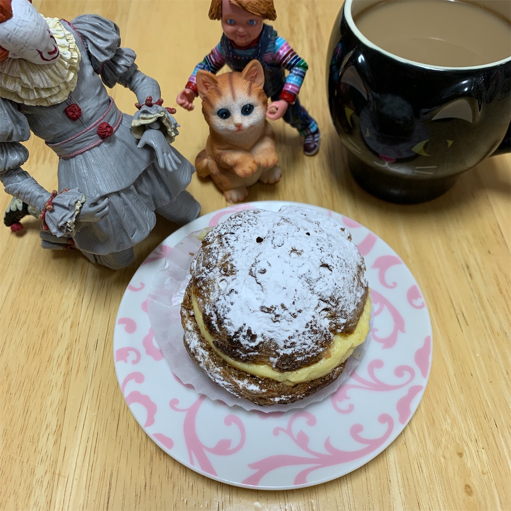 社長さんがサータアンダギーの紅いも味くれた❤️